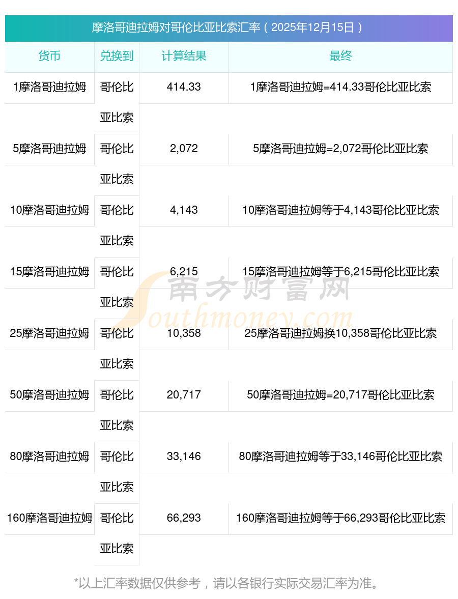 摩洛哥迪拉姆今天折算成哥伦比亚比索汇率行情表12-15