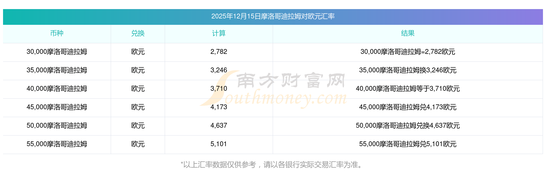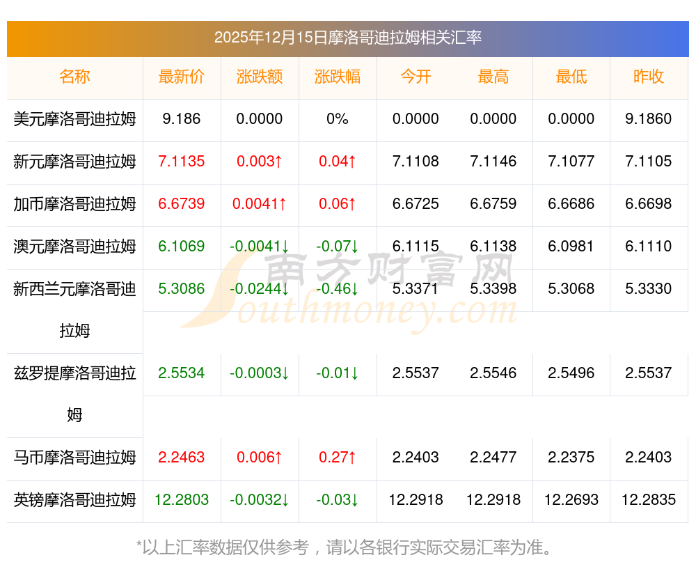 2025-12-15摩洛哥迪拉姆兑欧元外汇实时汇率