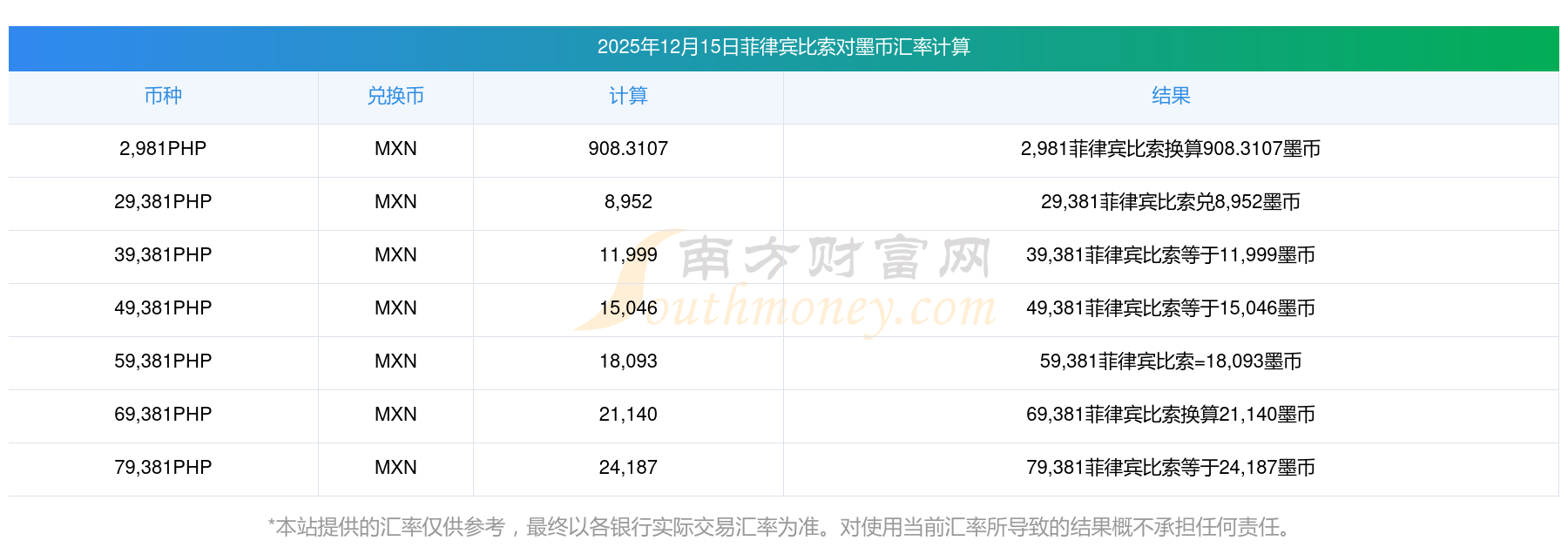 今天130菲律宾比索兑换墨币汇率多少?计算方法2025年12月15日