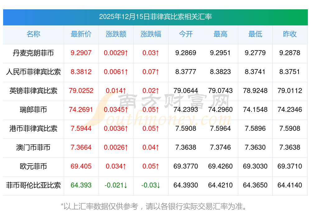 南方财富网为您提供菲律宾比索对墨币汇率最新价格详情。