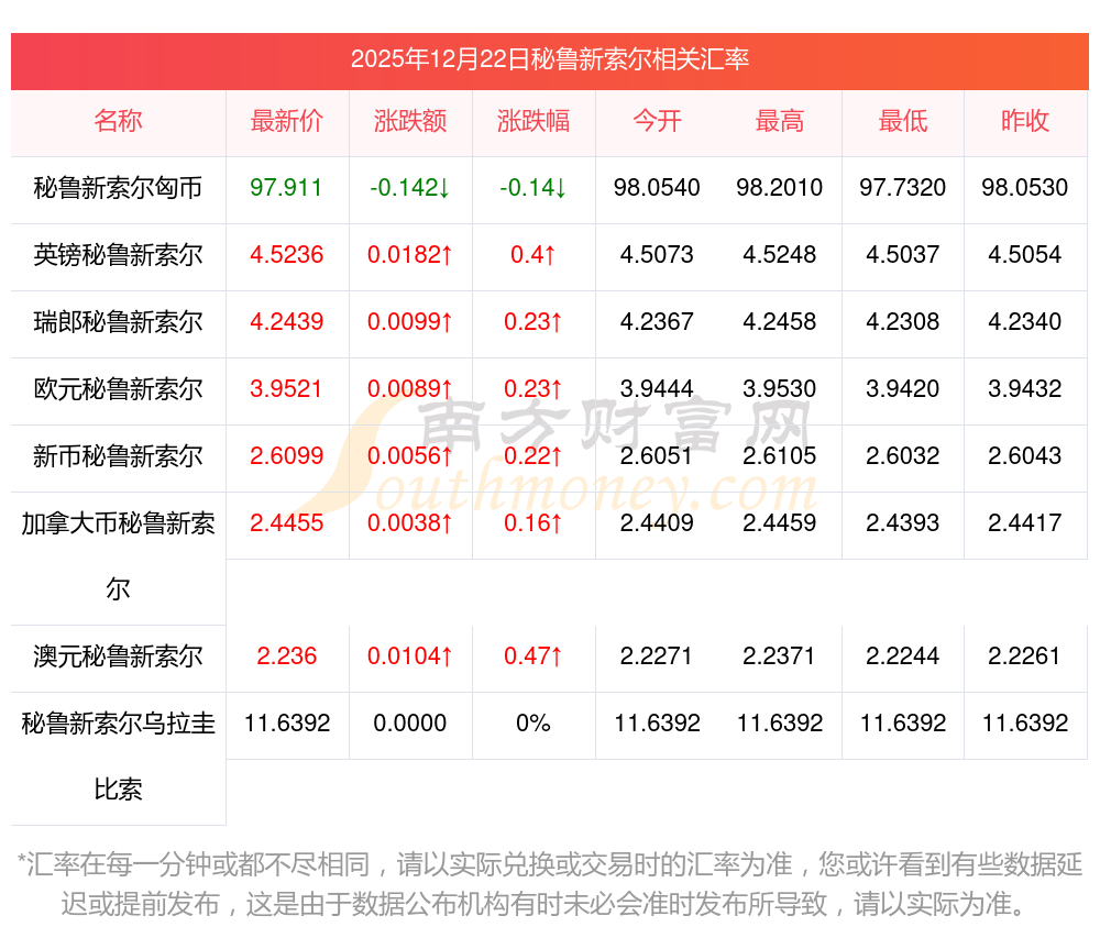 2025年12月22日秘鲁新索尔相关汇率查询