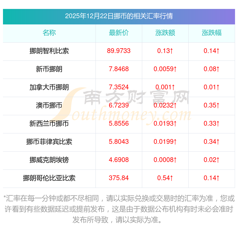 2025年12月22日挪币相关汇率查询
