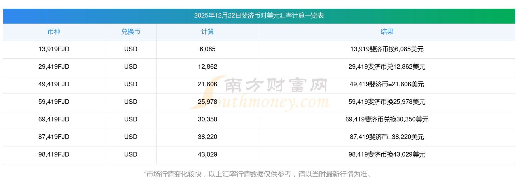 南方财富网为您提供斐济币对美元汇率最新价格详情。