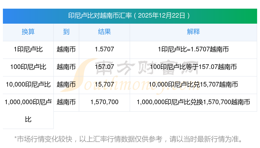 南方财富网为您提供印尼卢比对越南币汇率最新价格详情。