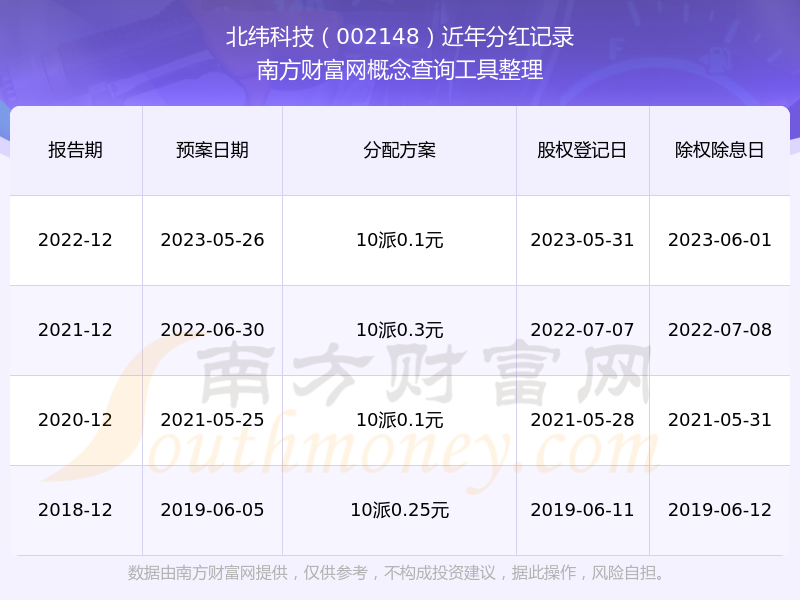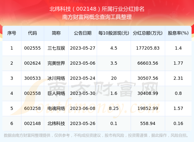 二、北纬科技002148行业分红排名