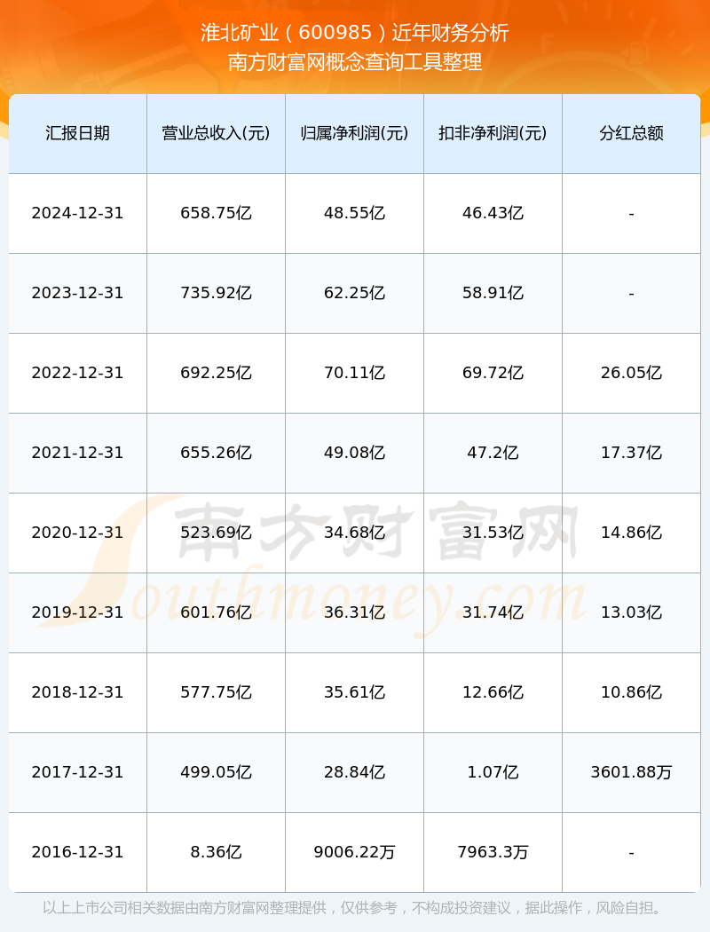 淮北矿业公司2024年实现营收658.75亿元,净利润48.55亿元,毛利率18.29%。