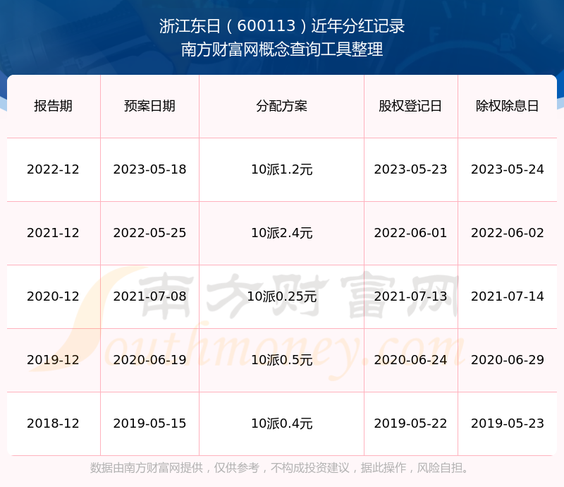 一、浙江东日(600113)股票分红记录