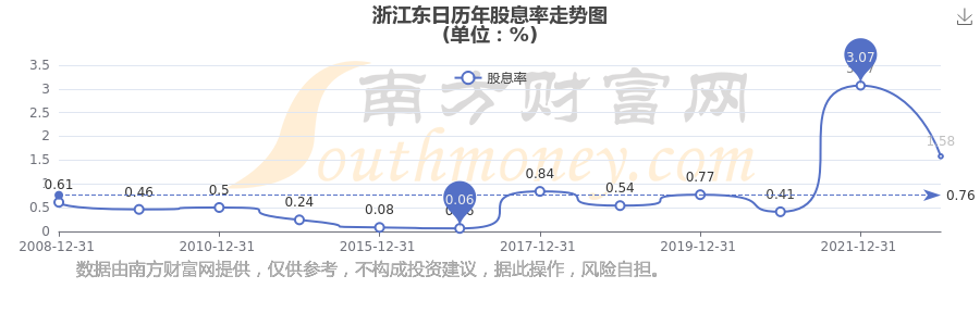 近年浙江东日年度股息率走势如下图: