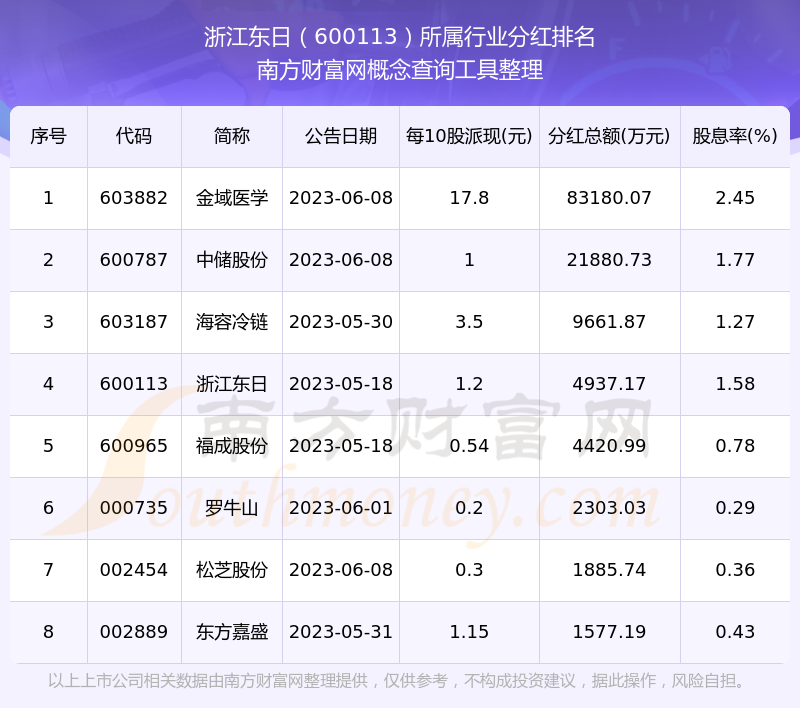 二、浙江东日600113行业分红排名