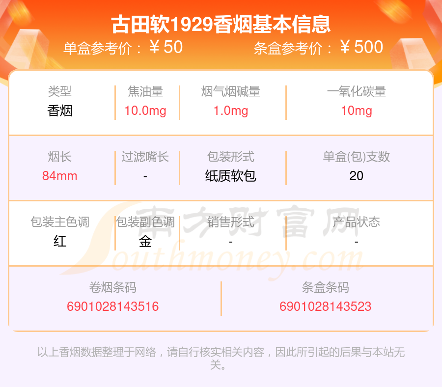以上香烟数据整理于网络,请自行核实相关内容,因此所引起的后果与本站无关。