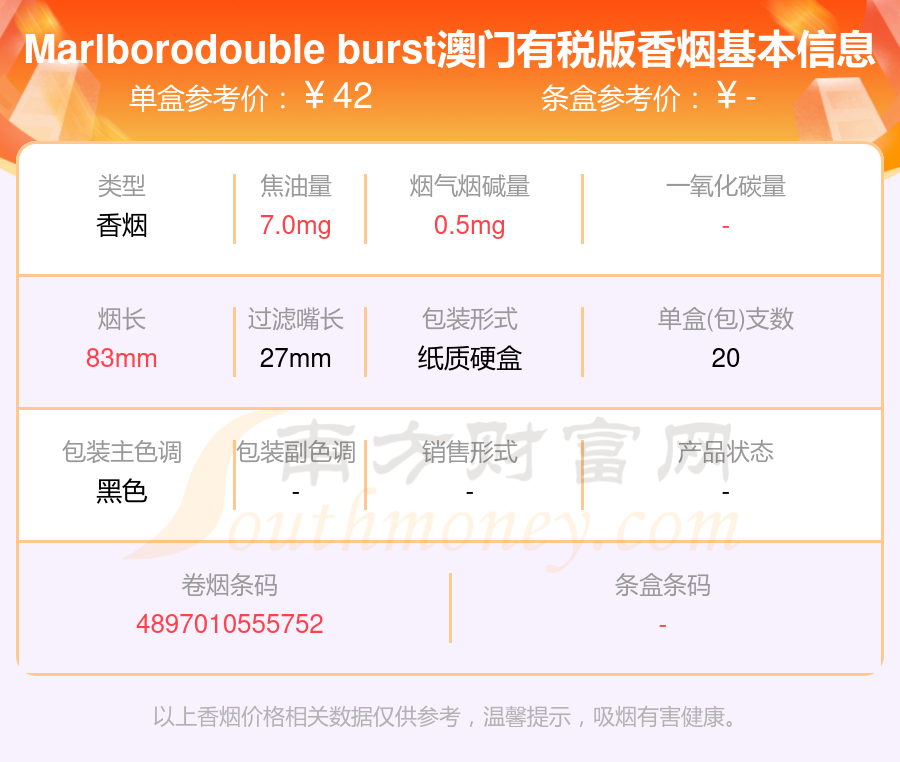 Marlborodouble burst澳门有税版香烟价格2024一览
