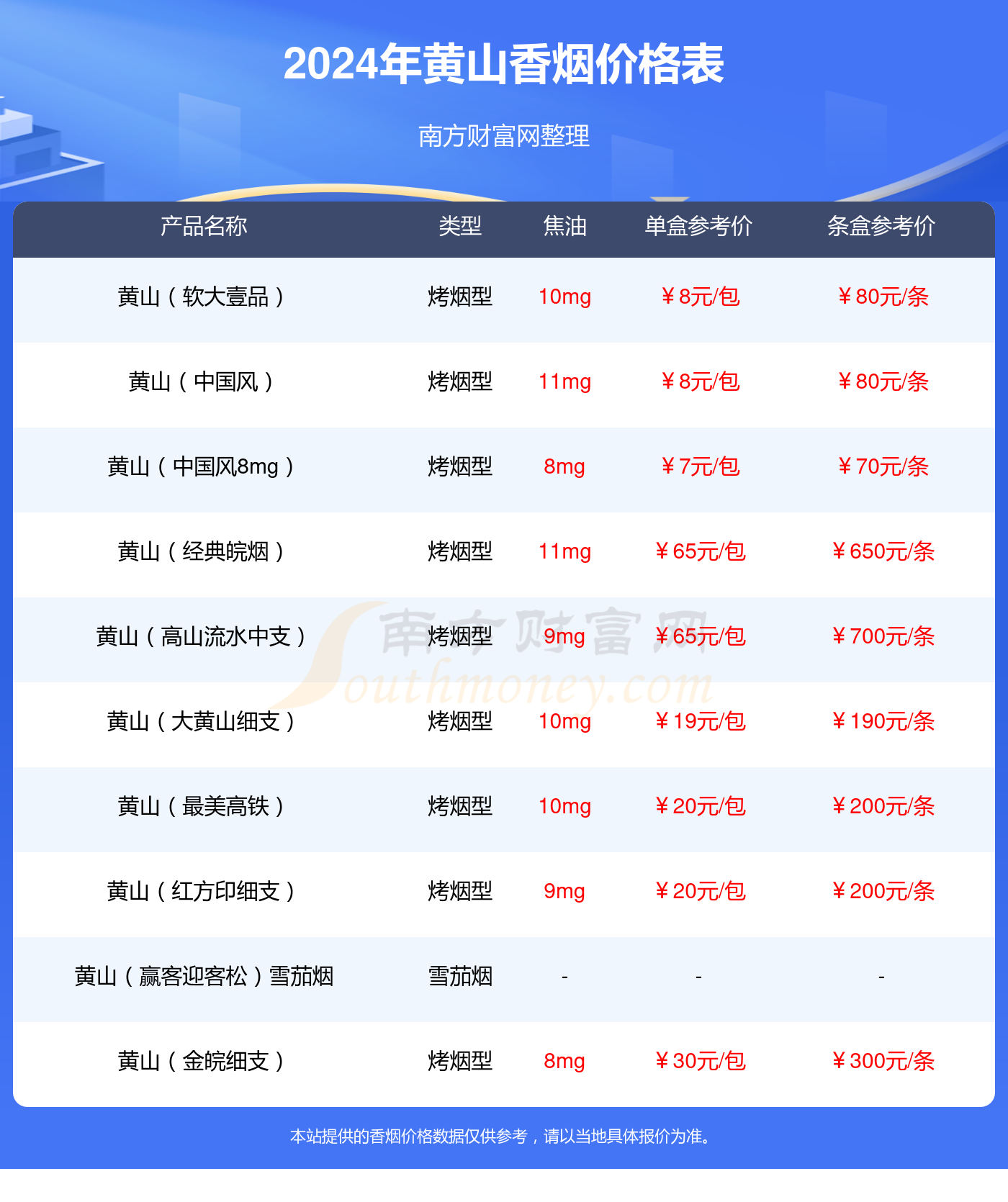 2024年香烟价格:黄山(软中国红)香烟多少钱一包