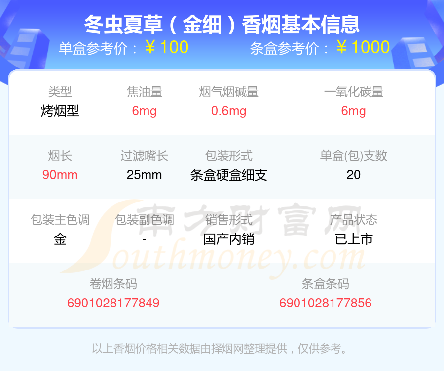 2024年冬虫夏草(金细)香烟价格表(多少钱一包)