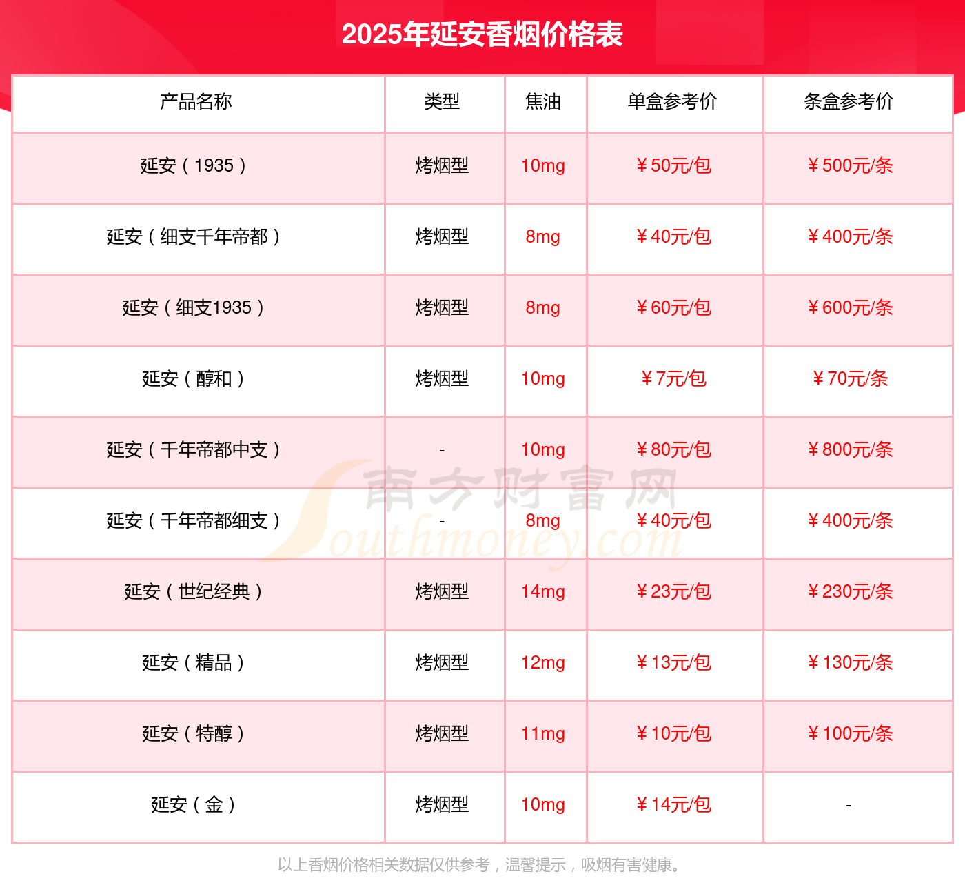 2025年延安红韵多少钱一条(延安香烟价格表)