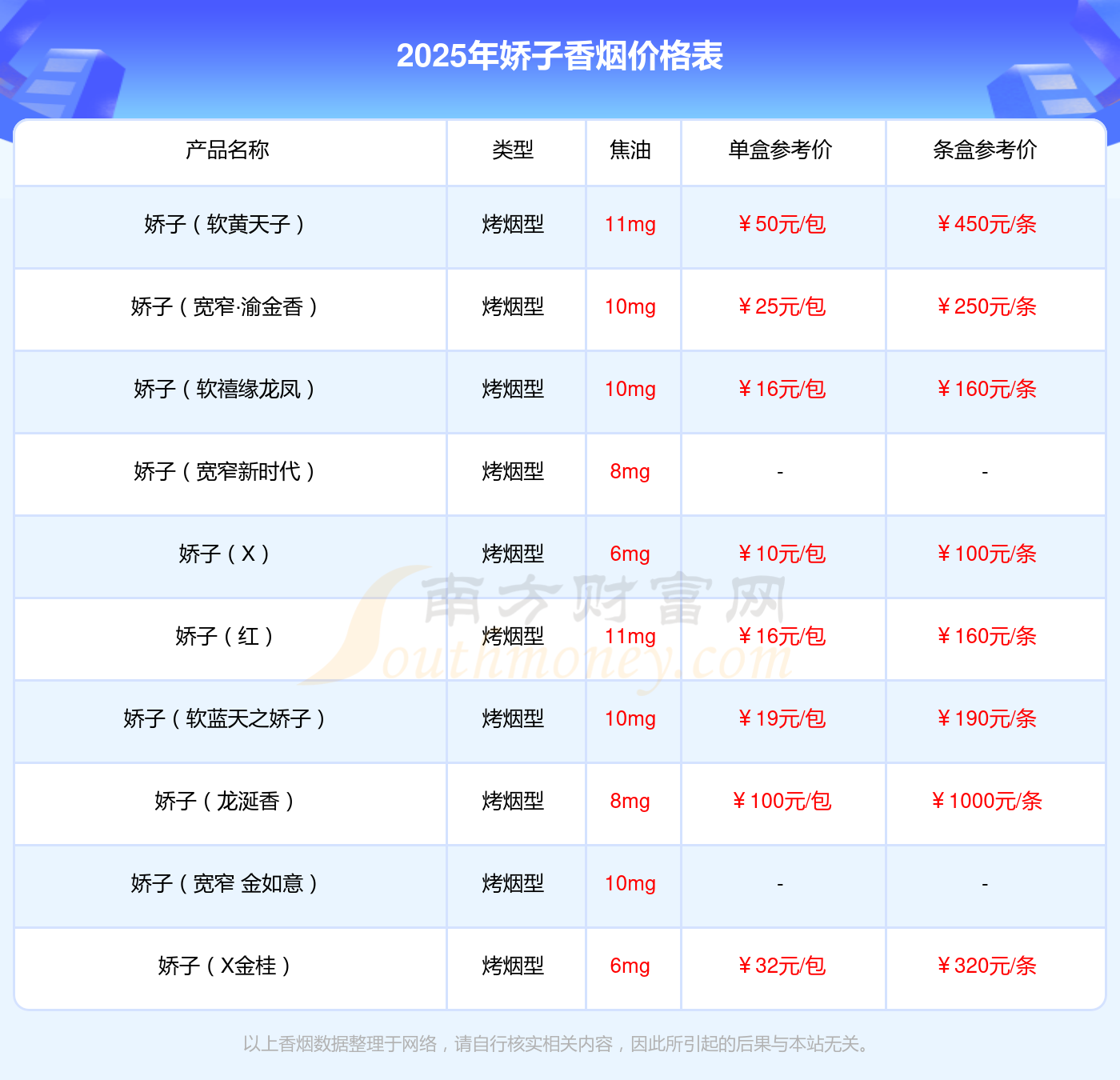 现拥有娇子传奇天子,娇子硬功夫王,娇子硬功夫7mg,功夫娇子10mg等多个系列产品的娇子,创牌于1995年,定位于中高端市场,是中国烟草36个名优品牌之一,其中娇子传奇天子和功夫娇子系列,更是一度成为烟民的关注热点。娇子以四川著名的大熊猫为品牌形象,理念为中国娇子,精英文化,口味以细腻,醇和,舒适为主,产品覆盖面广,增长强劲。