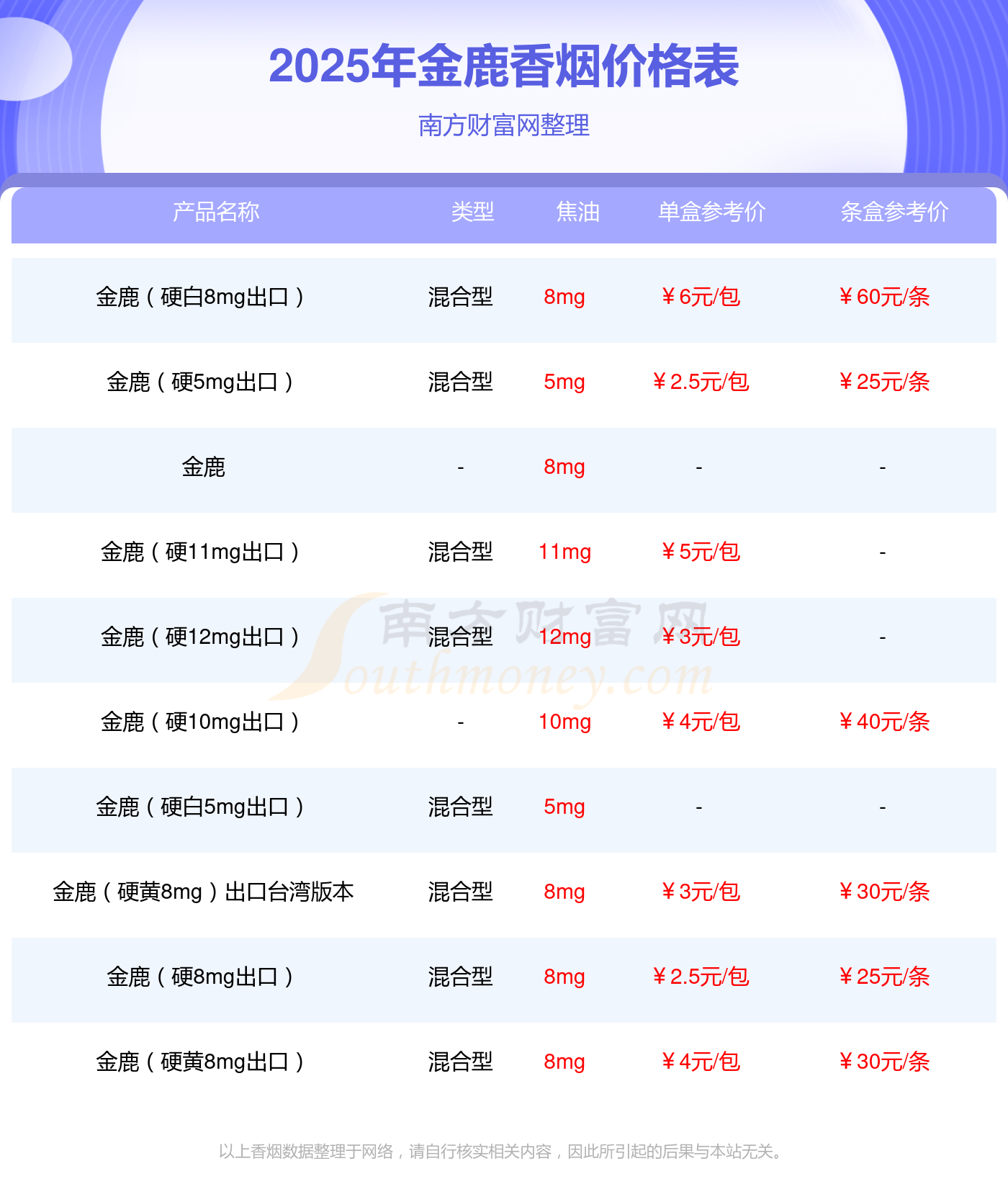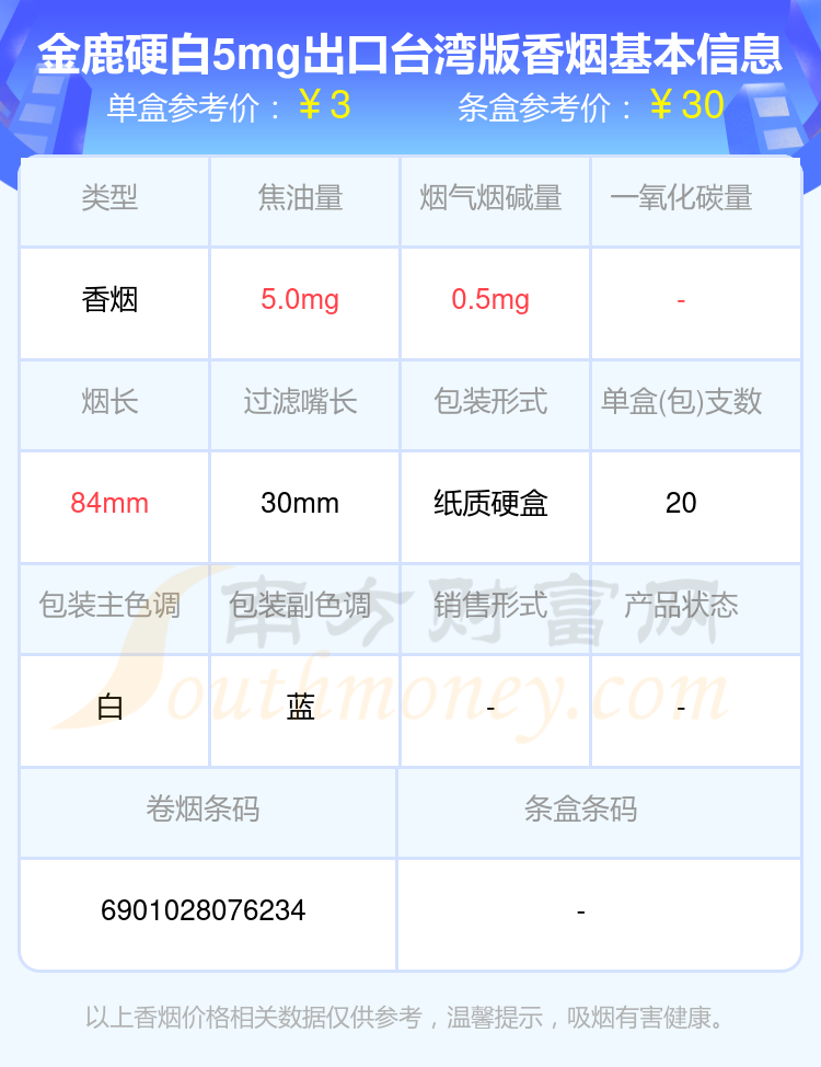 金鹿硬白5mg出口台湾版条盒参考价:30元