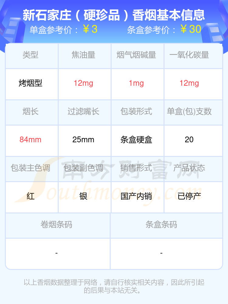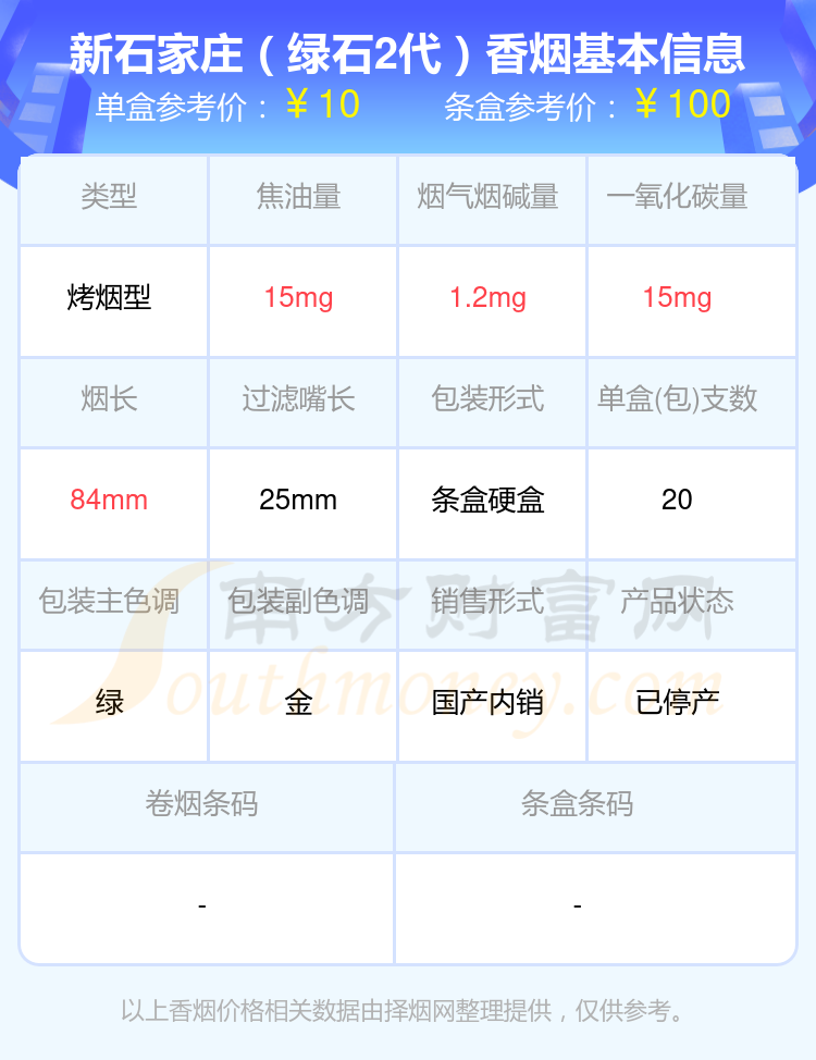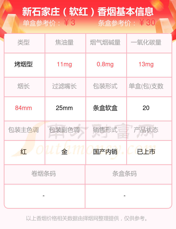 新石家庄香烟焦油量8mg-15mg左右的烟有哪些?择烟网为大家整理提供,分别有:新石家庄(绿石2代)、新石家庄(红石2代)、新石家庄(软)、新石家庄(金)、新石家庄(硬珍品)、新石家庄(软珍品)、新石家庄(软红)等,具体价格如下: