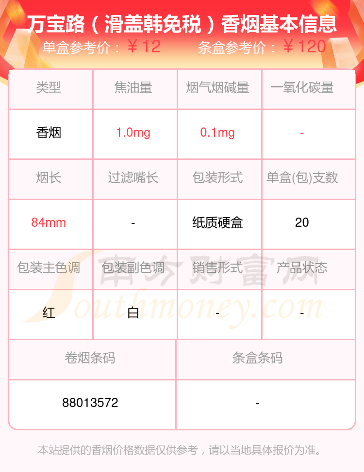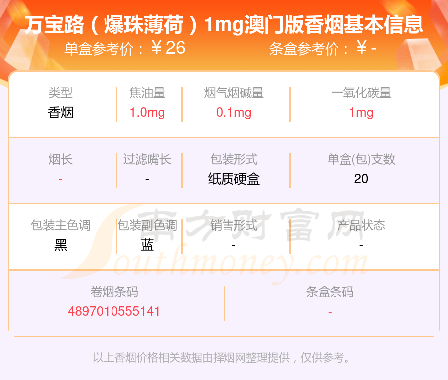 以上香烟数据整理于网络,请自行核实相关内容,因此所引起的后果与本站无关。