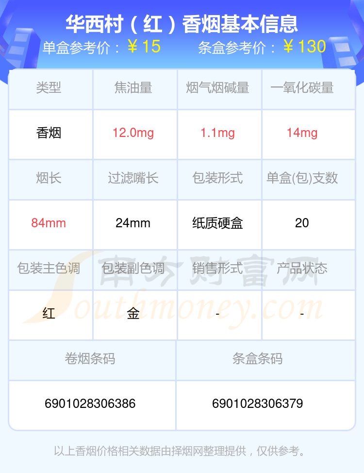 以上香烟价格相关数据由择烟网整理提供,仅供参考。