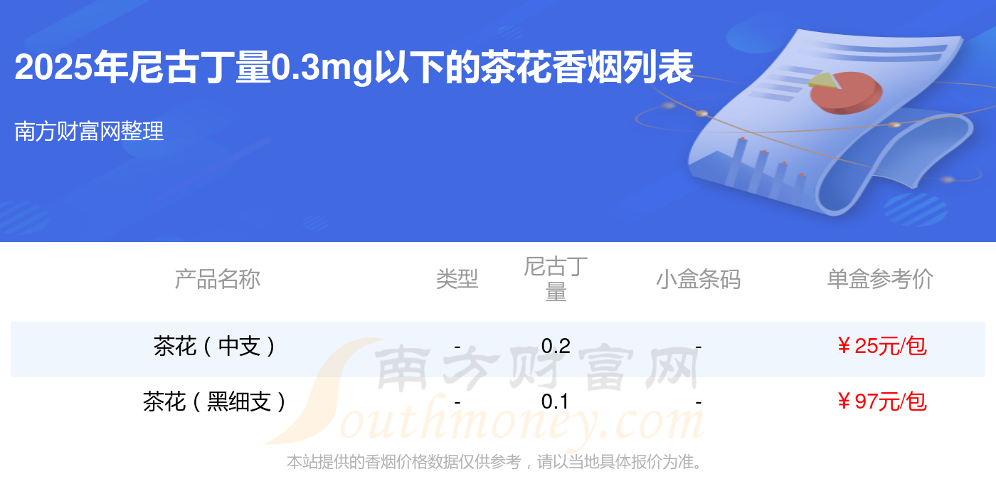 2025茶花香烟尼古丁量0.3mg以下的烟盘点