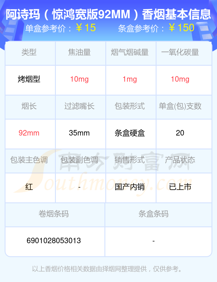 阿诗玛香烟尼古丁量低于1mg的有哪些?择烟网为大家整理提供,分别有: