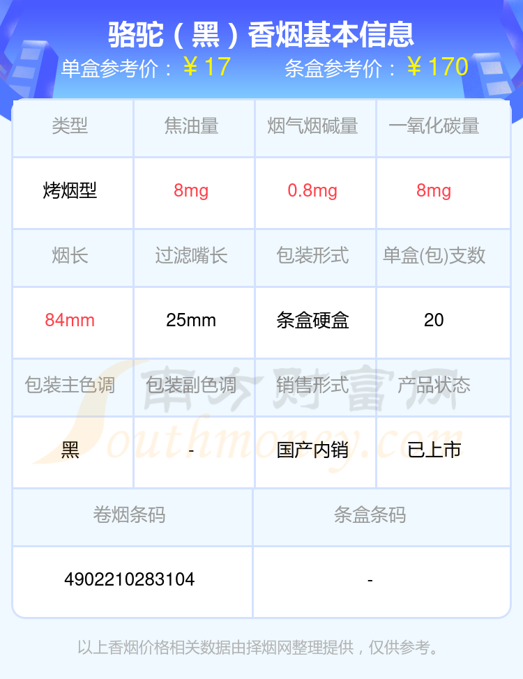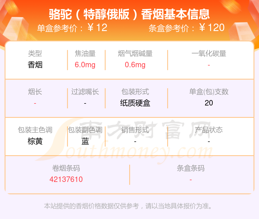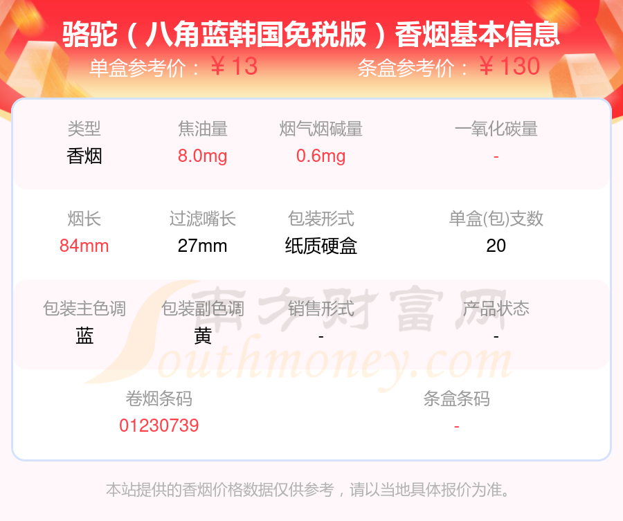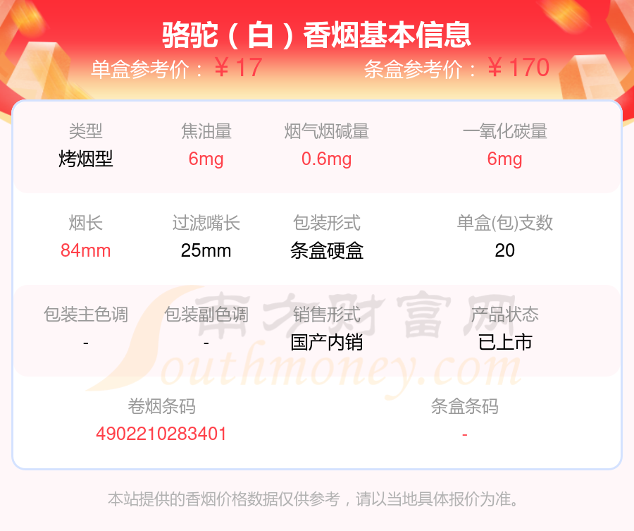 本站提供的香烟价格数据仅供参考,请以当地具体报价为准。