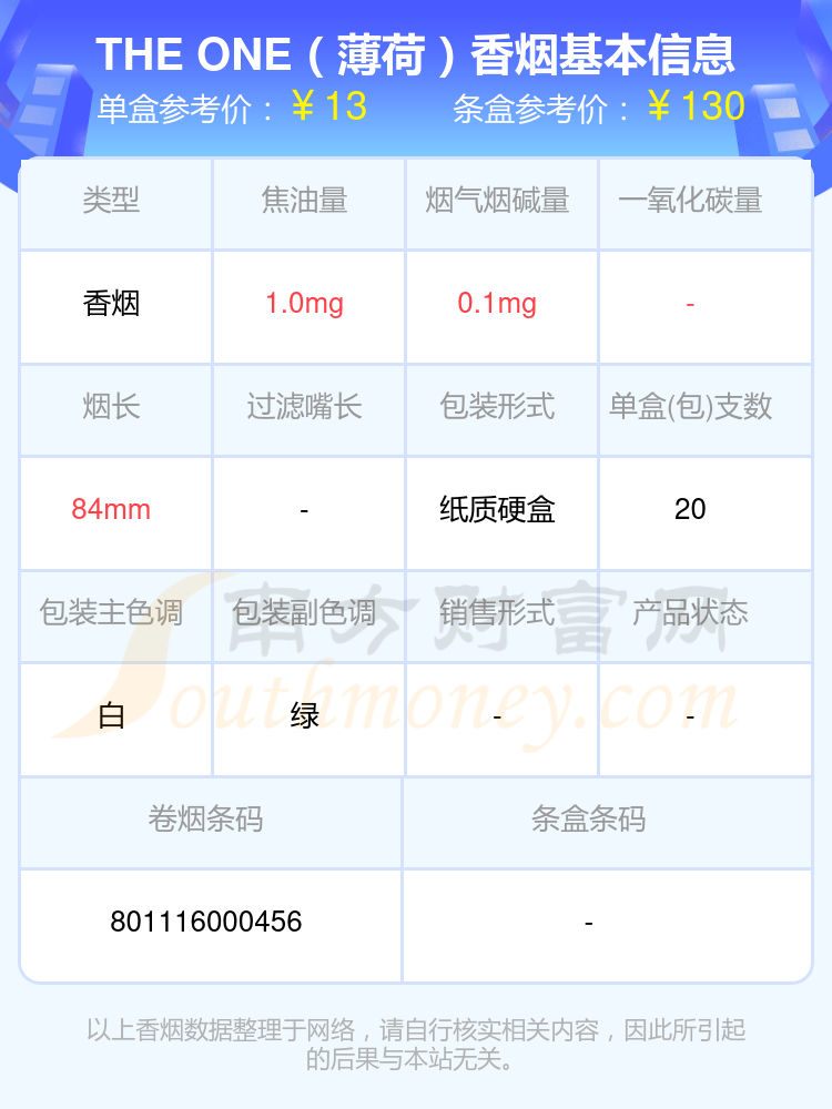 以上香烟数据整理于网络,请自行核实相关内容,因此所引起的后果与本站无关。