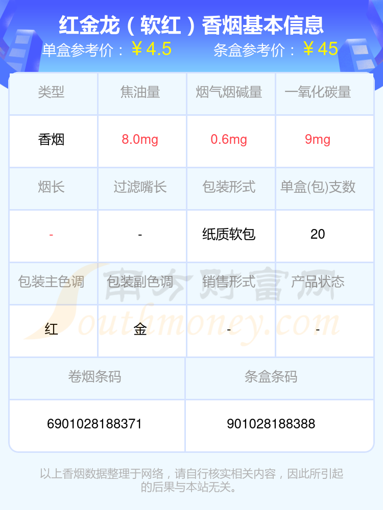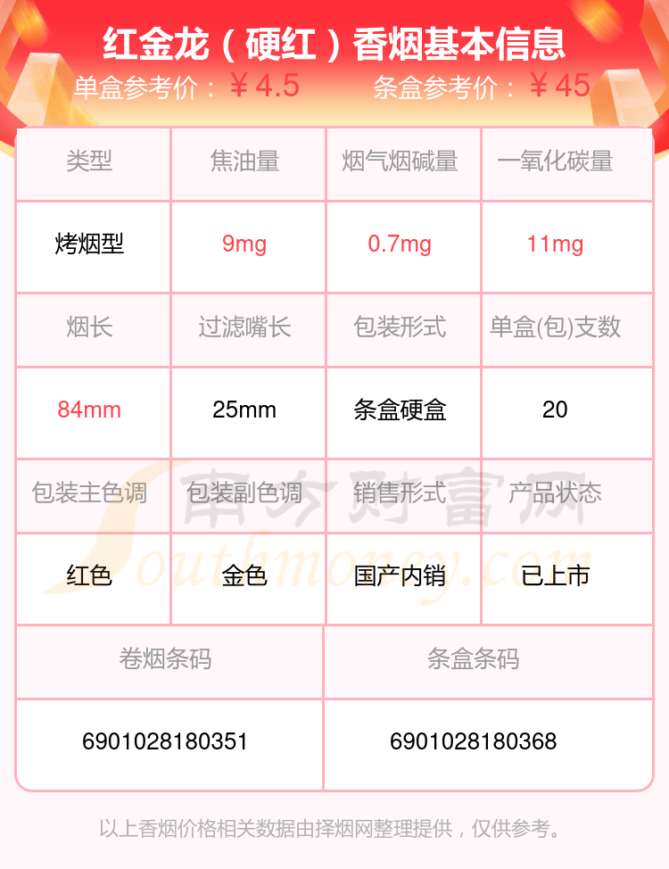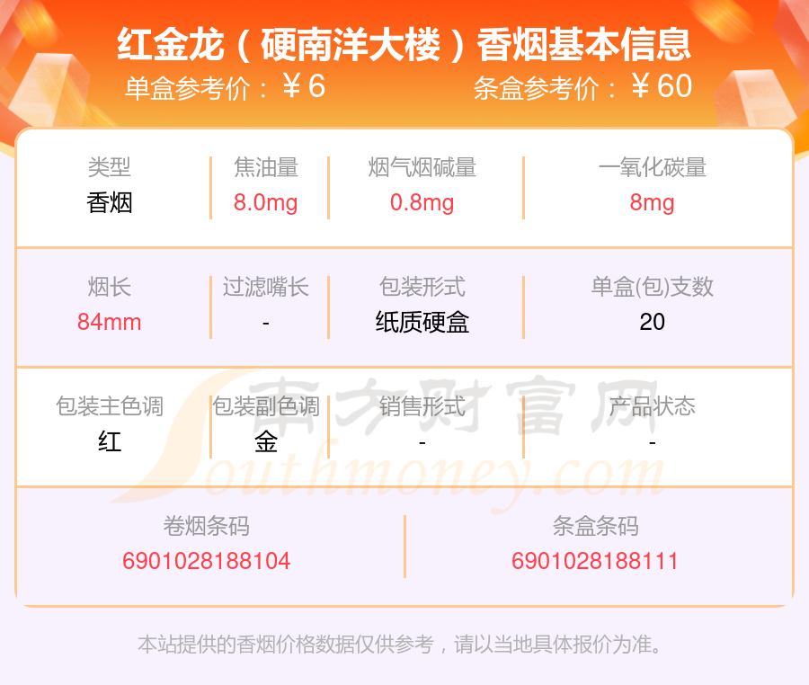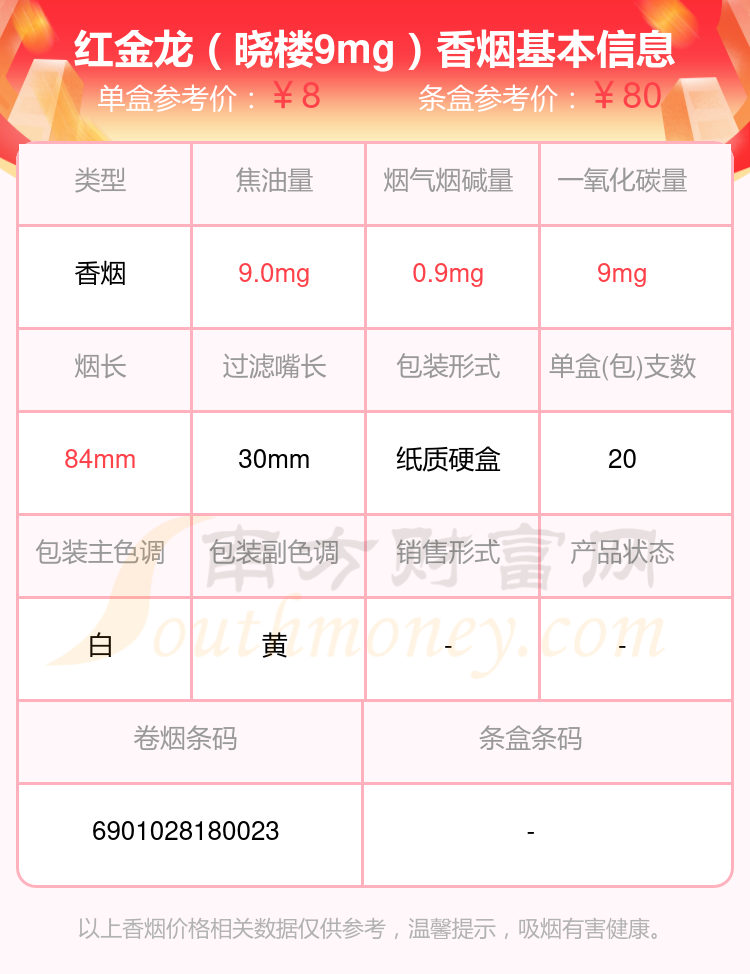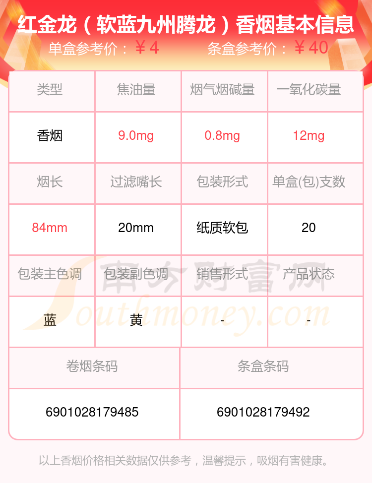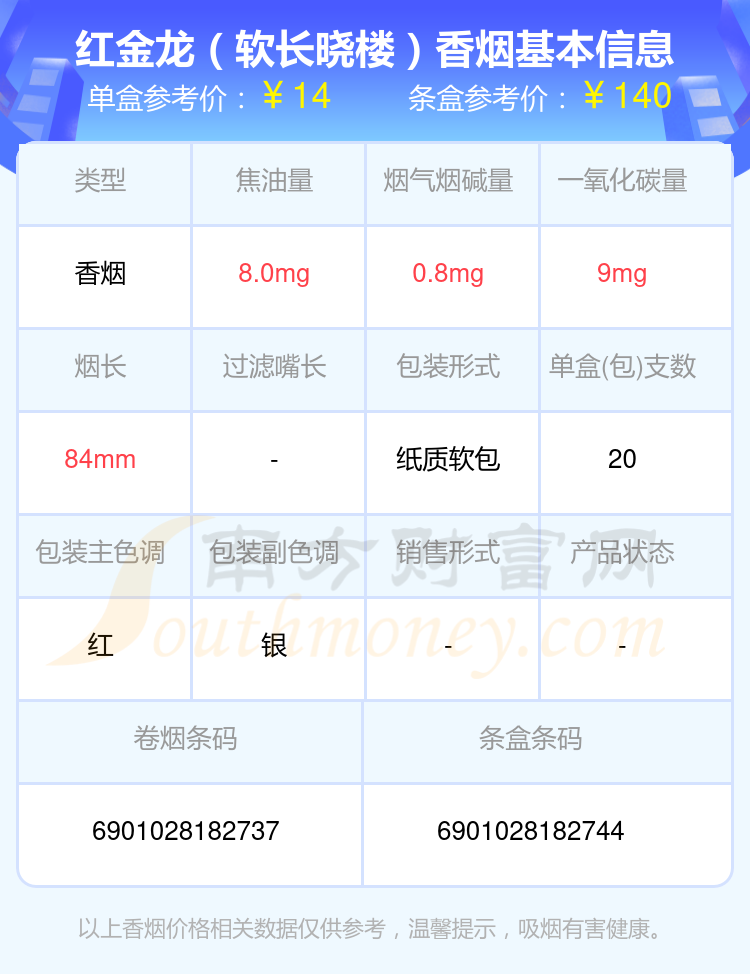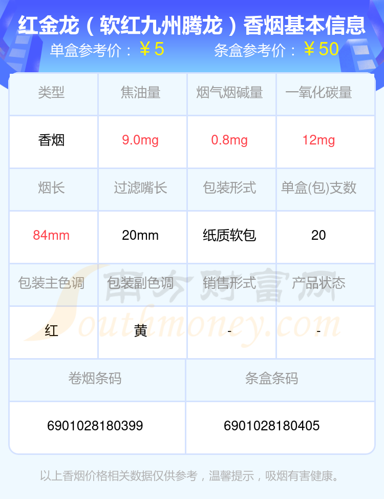 择烟网为大家盘点了焦油量8mg~15mg的红金龙香烟,有红金龙(晓楼9mg)、红金龙(软红九州腾龙)、红金龙(软九州腾龙)、红金龙(软蓝九州腾龙)、红金龙(硬九州腾龙)、红金龙(硬红)、红金龙(襄阳)、红金龙(软长晓楼)、红金龙(软红)、红金龙(硬南洋大楼)等,详细价格如下:
