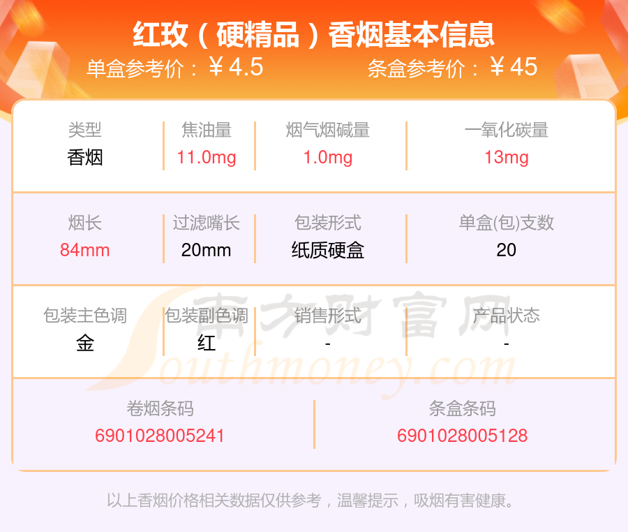 红玫香烟烟碱量低于10mg的烟有哪些?择烟网为大家整理提供,分别有:红玫(软)、红玫(硬精品)等,具体价格如下: