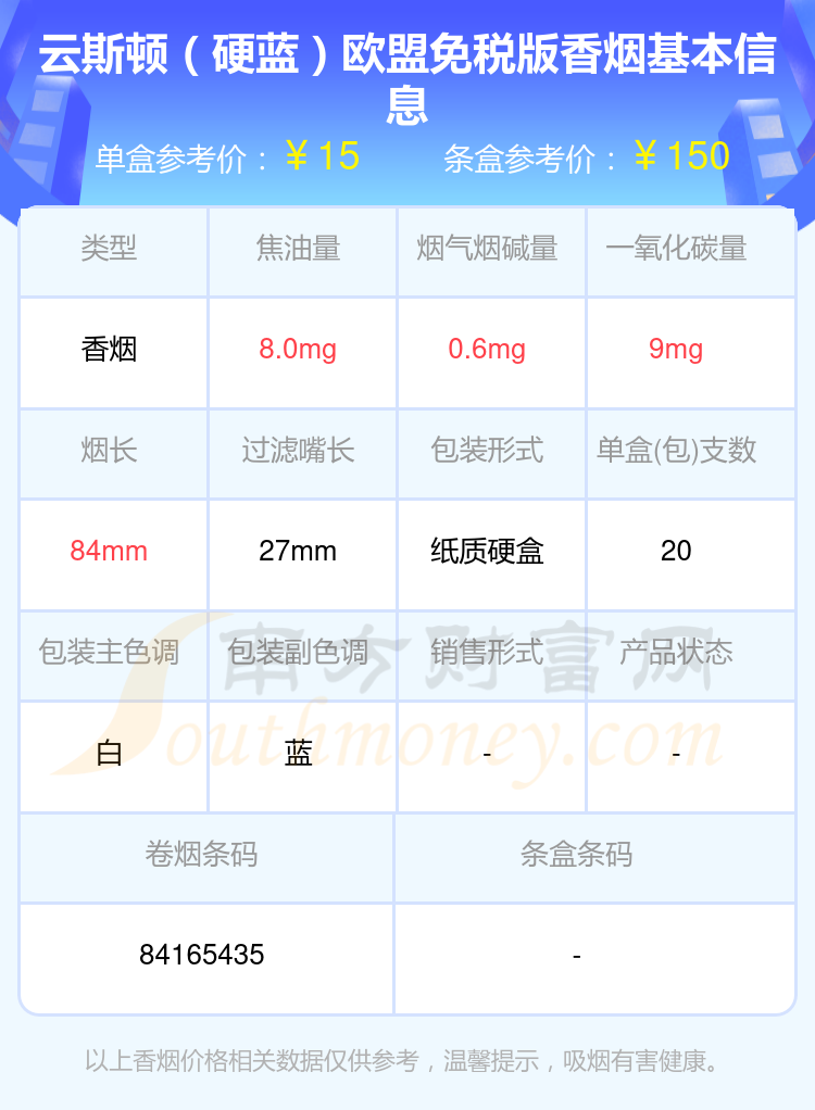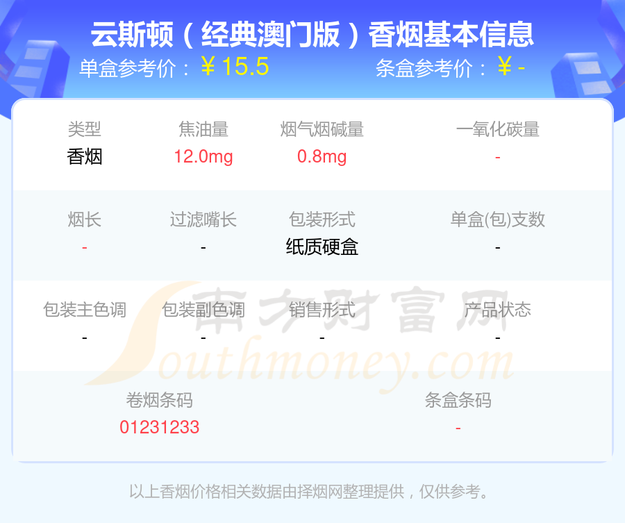 本站提供的香烟价格数据仅供参考,请以当地具体报价为准。