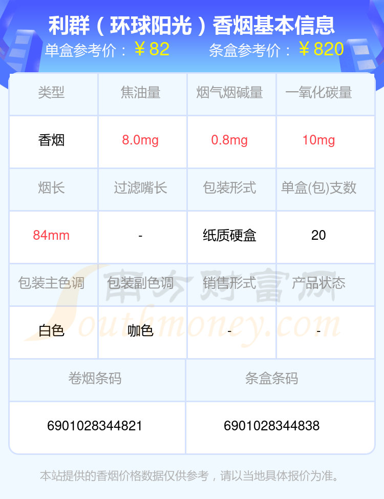 本站提供的香烟价格数据仅供参考,请以当地具体报价为准。