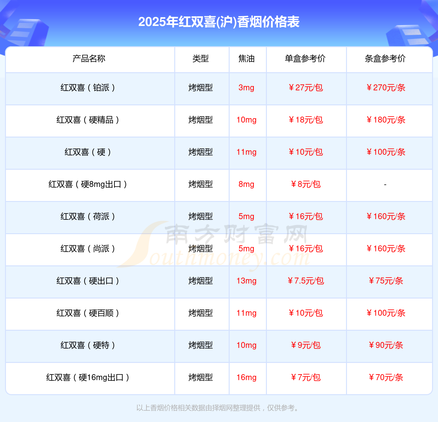 本站提供的香烟价格数据仅供参考,请以当地具体报价为准。