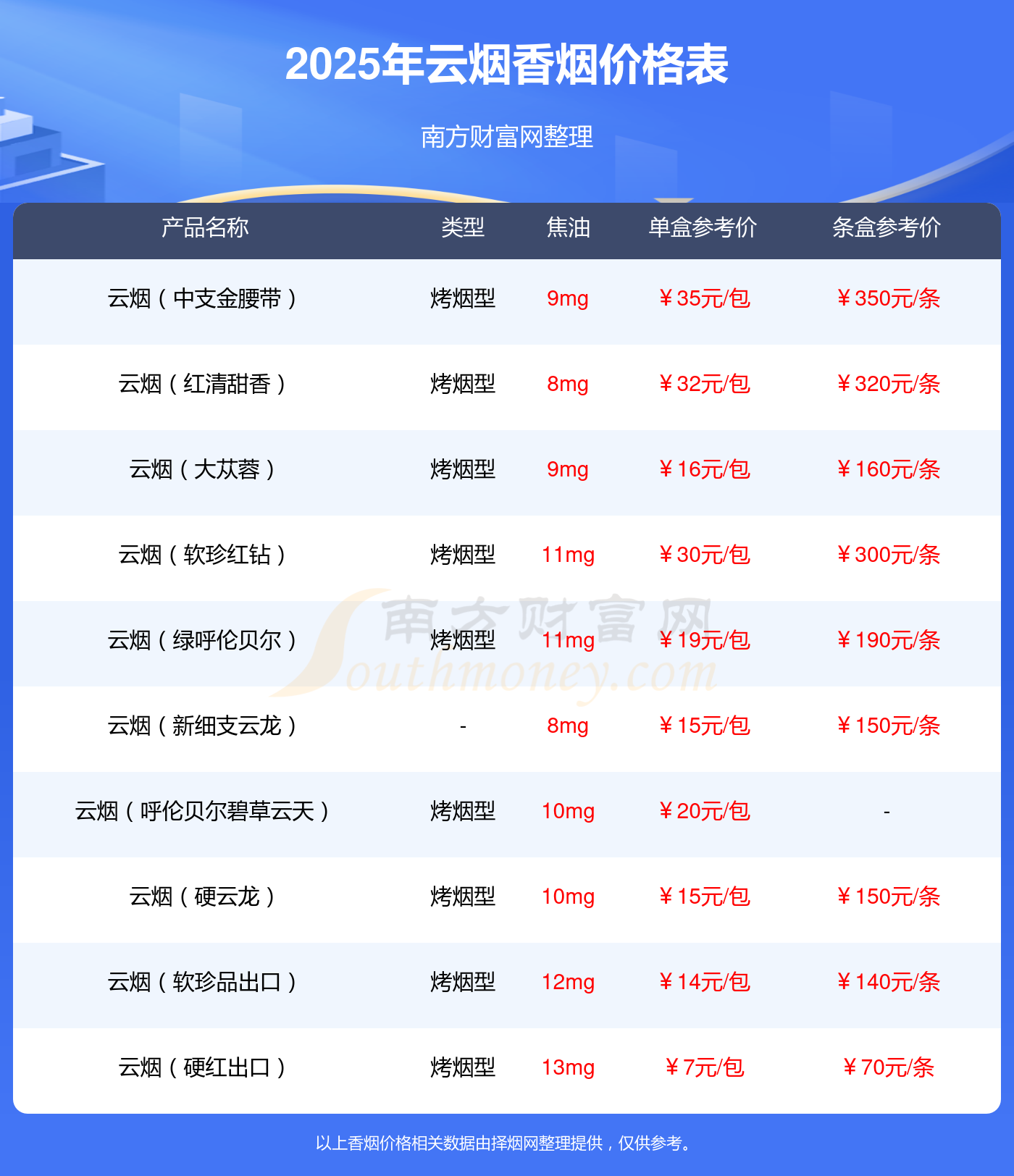 本站提供的香烟价格数据仅供参考,请以当地具体报价为准。