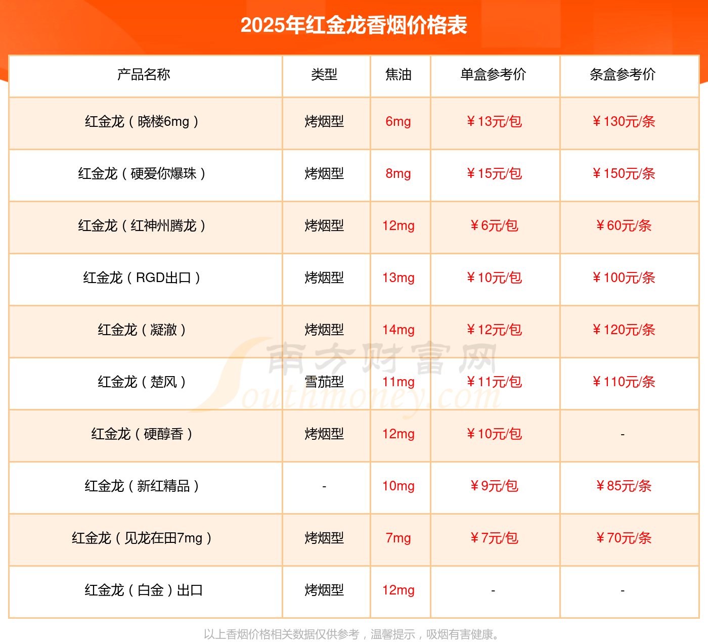 1916年红金龙卷烟由南洋兄弟烟草公司创牌,二十世纪20年代,红金龙畅销中国。至今红金龙旗下形成了红金龙(晓楼)、红金龙(圆梦)、红金龙(虹之彩)、红金龙(火之舞)、红金龙(九州腾龙)等等多个品种和系列,形成“烟草本味,饱满醇厚”的独特个性,被誉为中国精品类卷烟品牌的“四小天王”之一。
