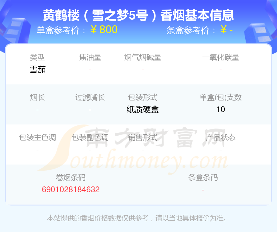 黄鹤楼(雪之梦5号)单盒参考价:800元