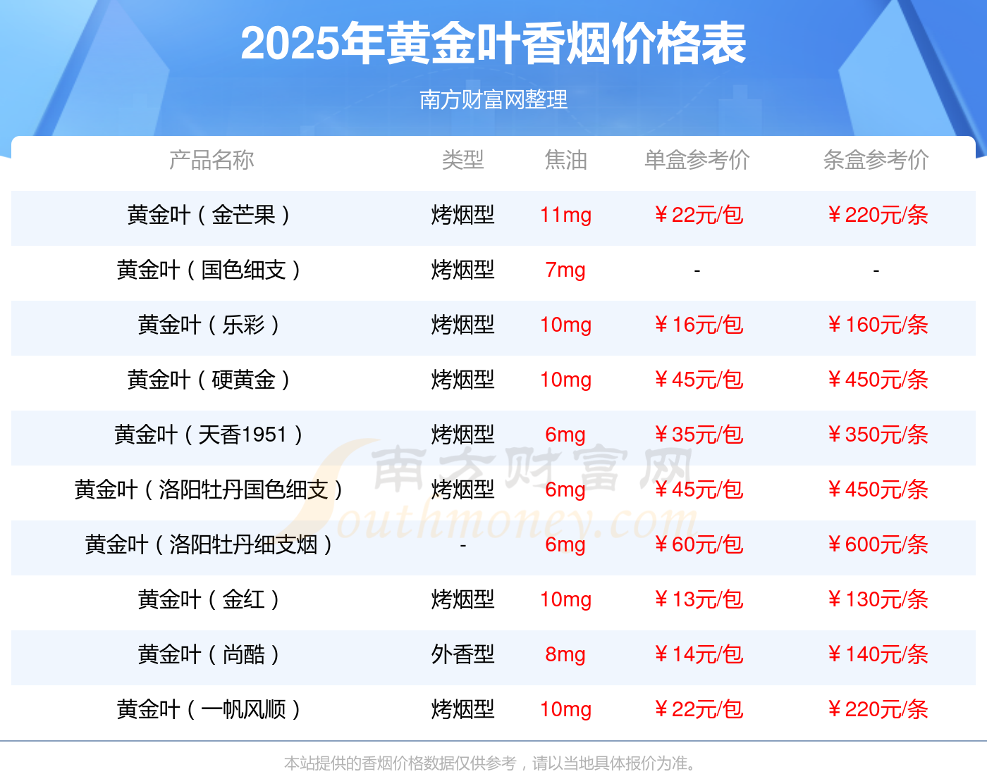 黄金叶十支装大金圆单盒参考价:22元