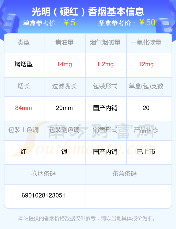 择烟网为大家盘点了尼古丁低于4mg的光明香烟,分别有光明(硬红)、光明(金世纪)等,具体价格如下: