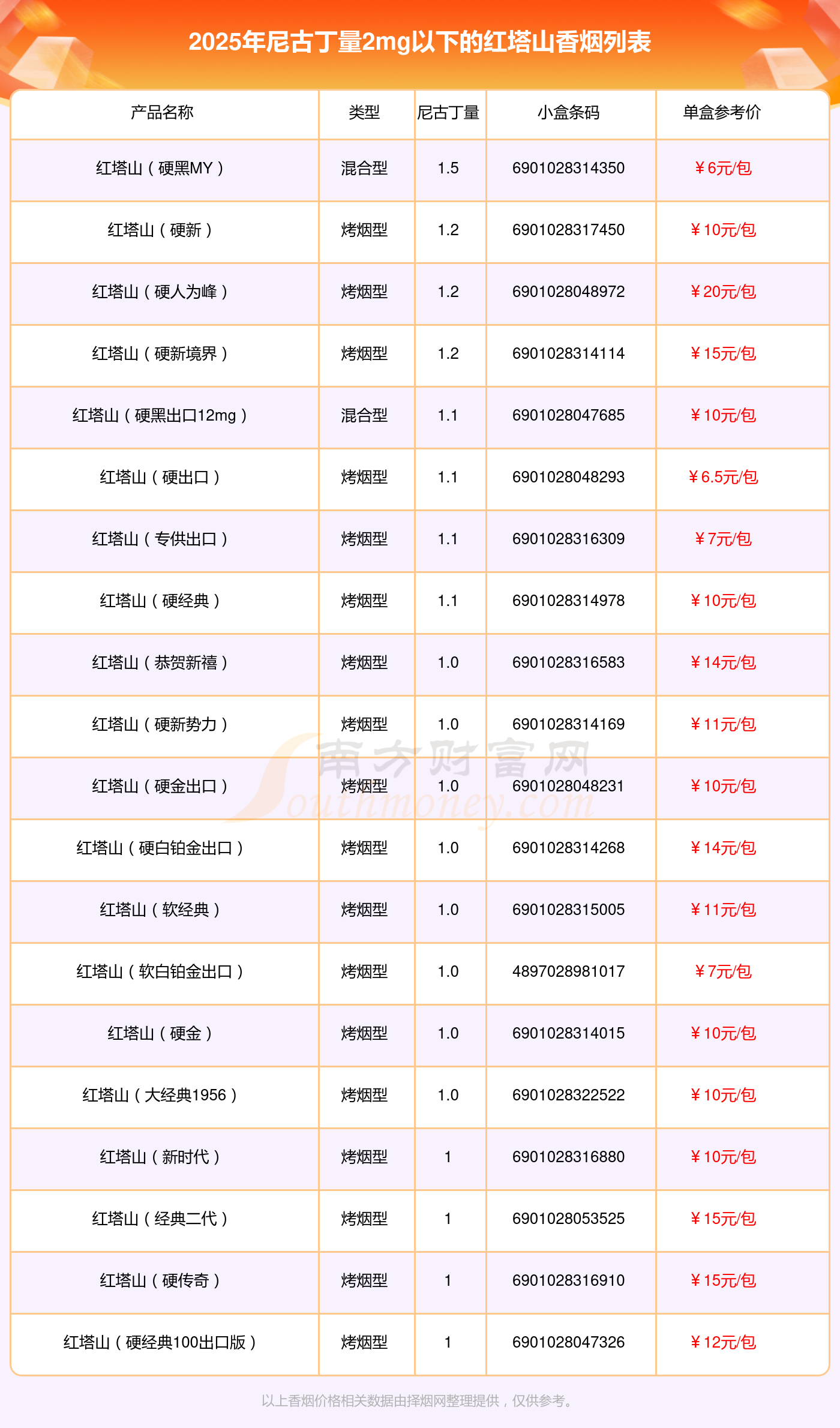 以上香烟价格相关数据由择烟网整理提供,仅供参考。
