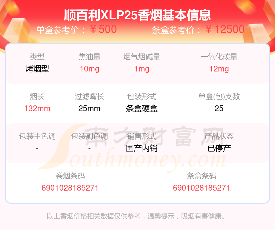 择烟网为大家盘点了顺百利香烟高于100元的,分别有顺百利XLP25、顺百利10支LP、顺百利LP5等,具体价格如下:
