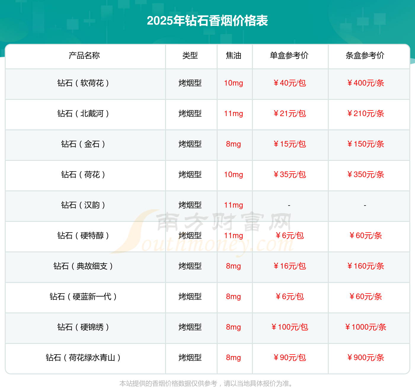 以上香烟价格相关数据仅供参考,温馨提示,吸烟有害健康。