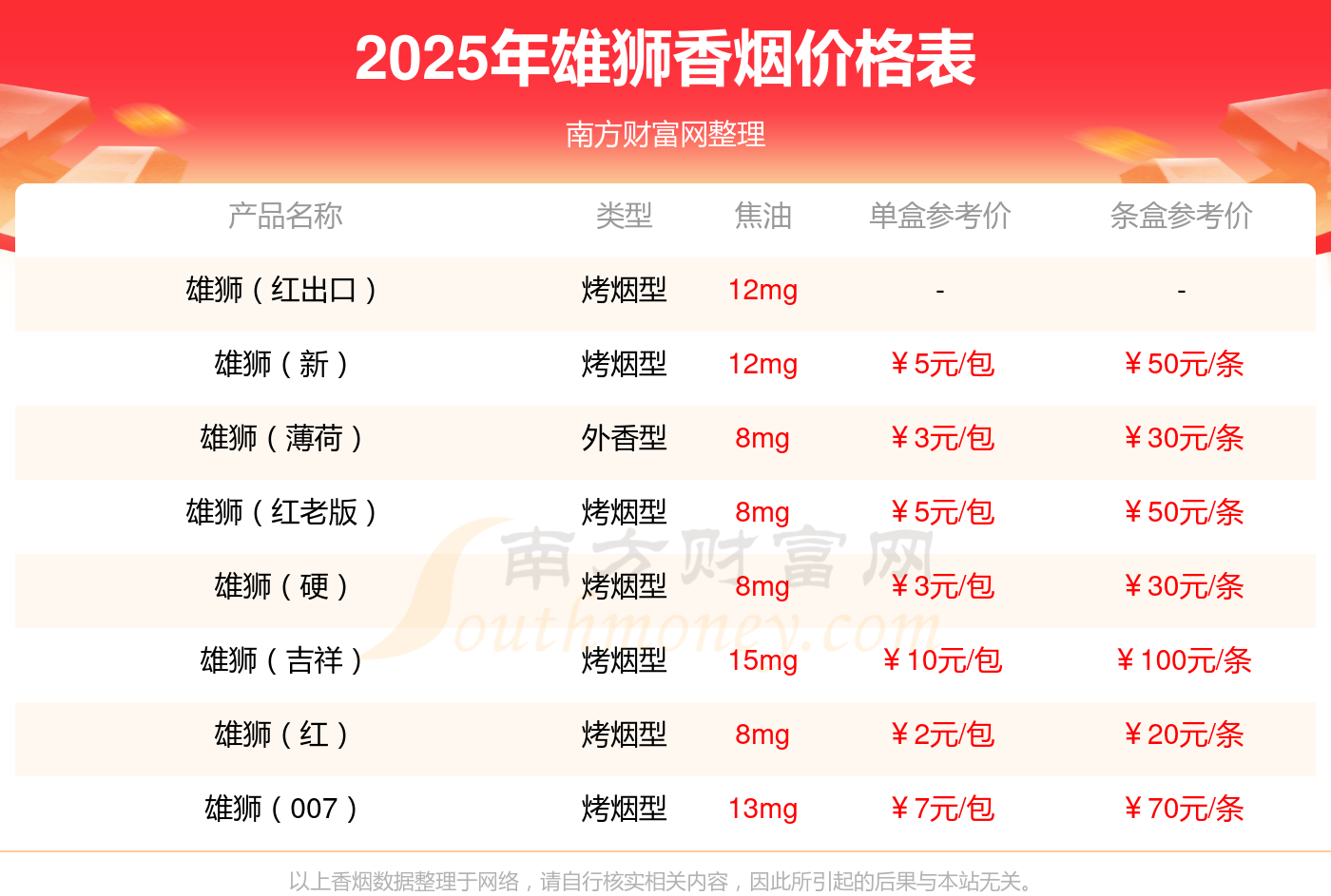 雄狮(双叶.薄荷)香烟价格2025_一条多少钱?