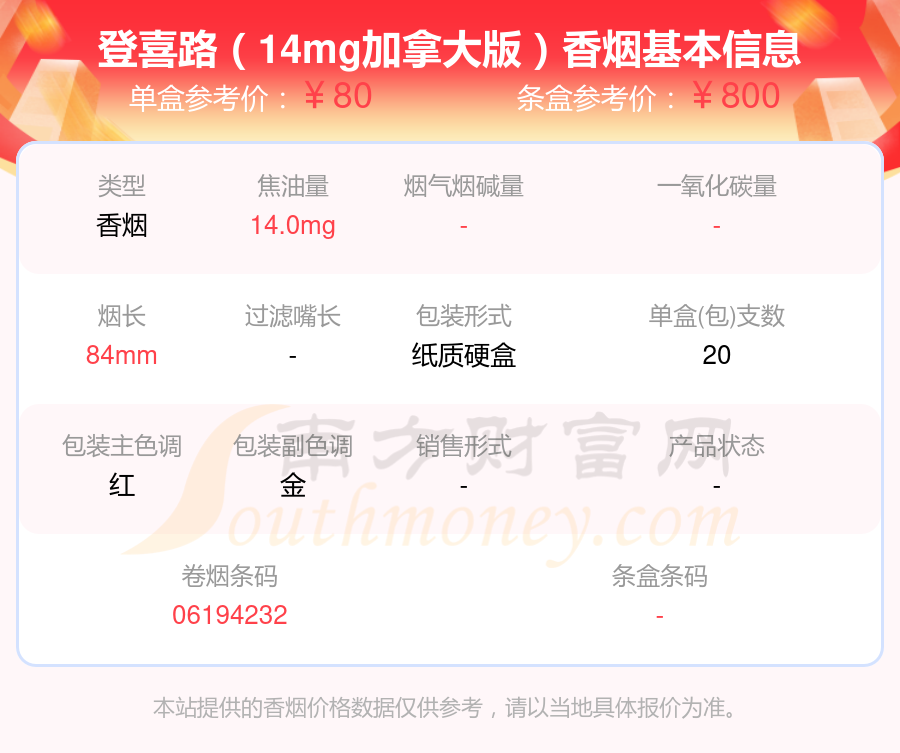 本站提供的香烟价格数据仅供参考,请以当地具体报价为准。