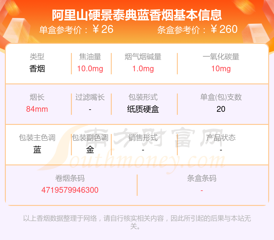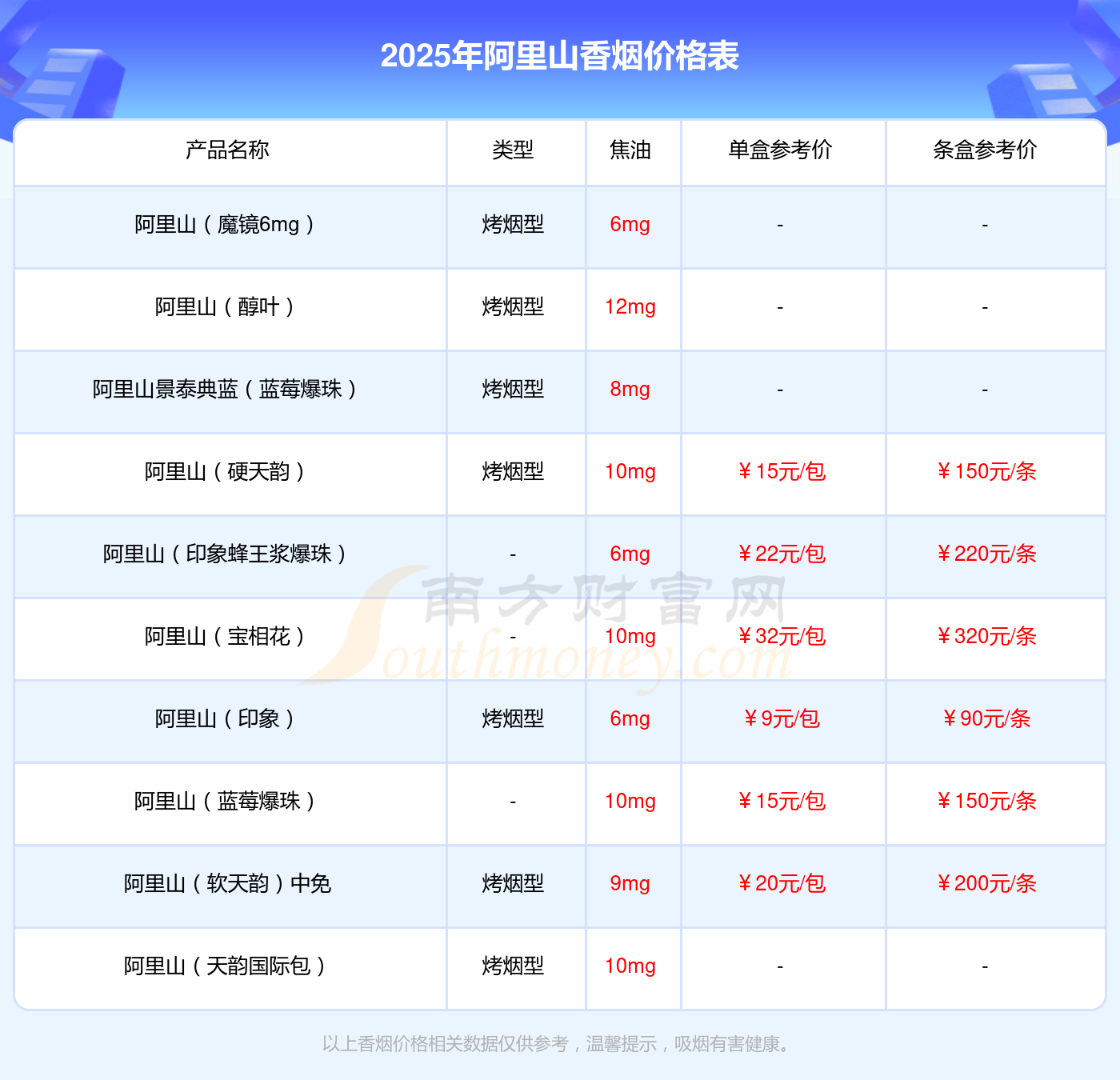 以上香烟价格相关数据仅供参考,温馨提示,吸烟有害健康。