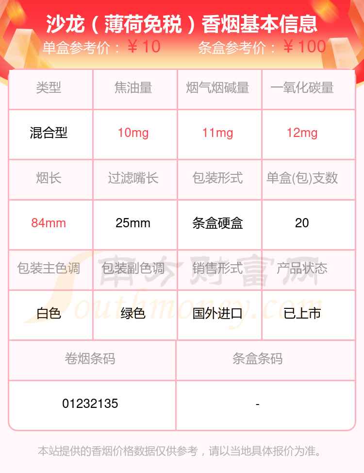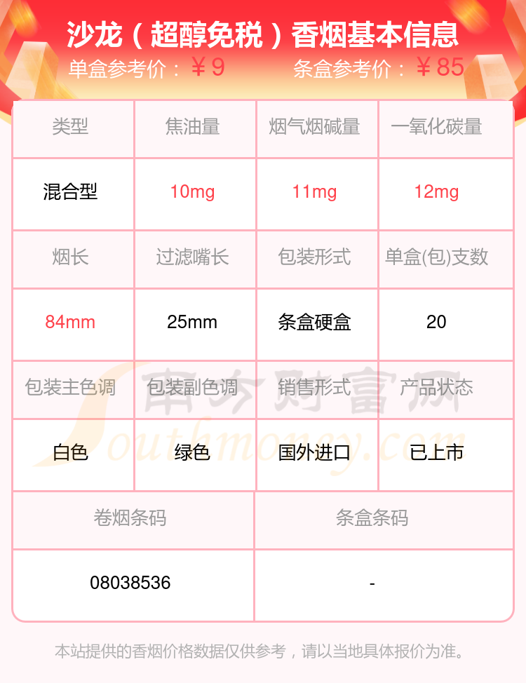 以上香烟数据整理于网络,请自行核实相关内容,因此所引起的后果与本站无关。
