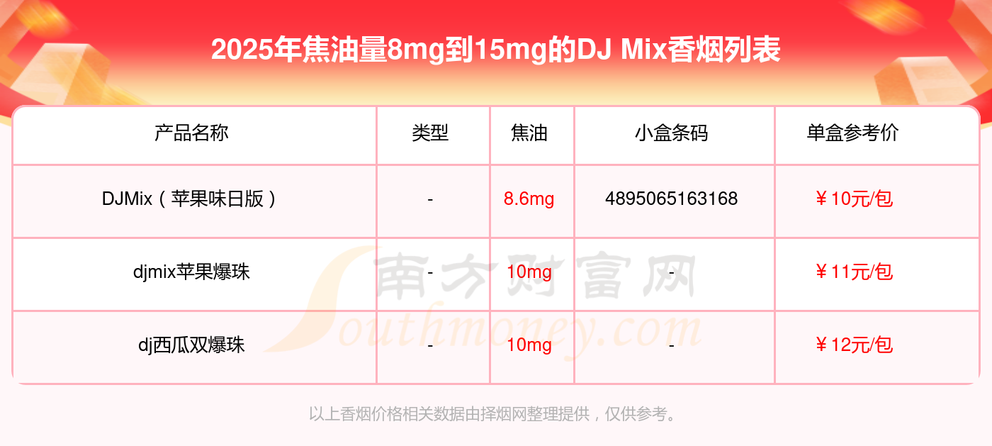 2025年焦油量8mg到15mg的DJ Mix香烟都有哪些?