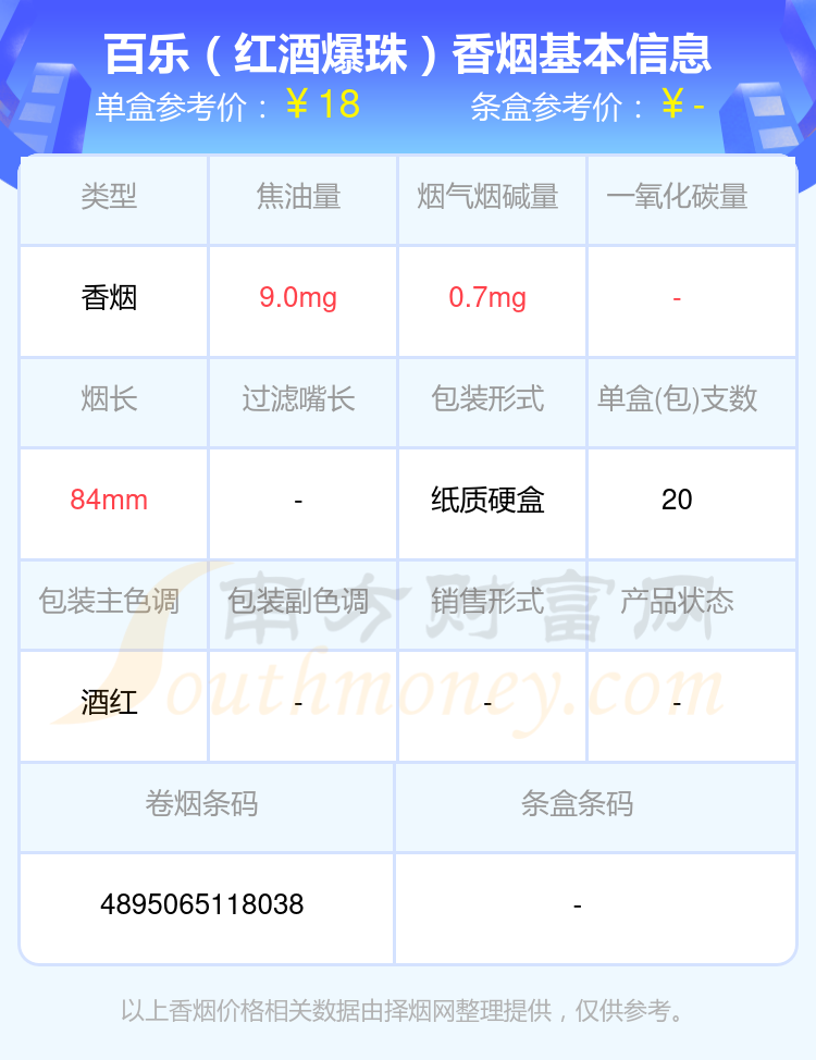 以上香烟价格相关数据由择烟网整理提供,仅供参考。