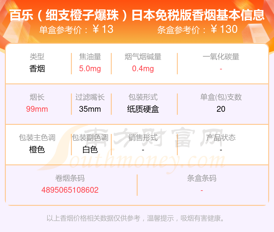 PEEL(百乐)香烟烟碱量低于1mg的烟有哪些?择烟网为大家整理提供,分别有:百乐(红酒爆珠)、百乐(细支橙子爆珠)日本免税版等,具体价格如下: