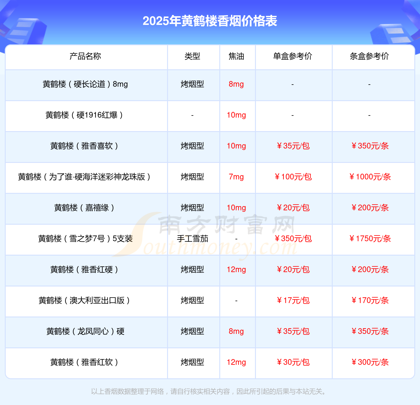 以上香烟价格相关数据由择烟网整理提供,仅供参考。
