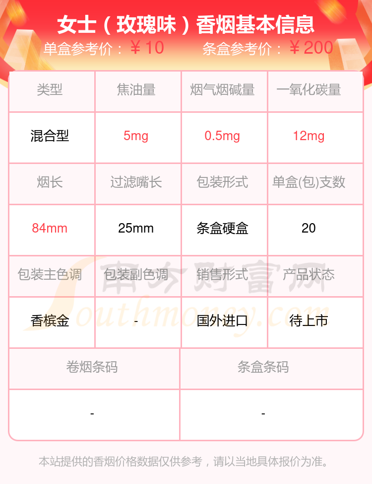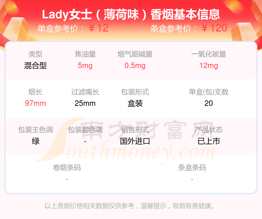 焦油量10mg以下的Lady(女士)香烟有哪些?择烟网为大家整理盘点,有女士(薄荷味)、Lady女士(薄荷味)、女士(玫瑰味)等,详细价格如下: