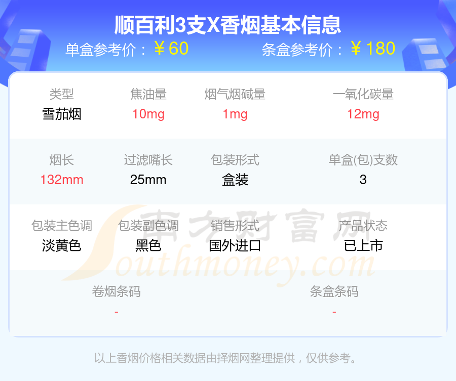 以上香烟数据整理于网络,请自行核实相关内容,因此所引起的后果与本站无关。
